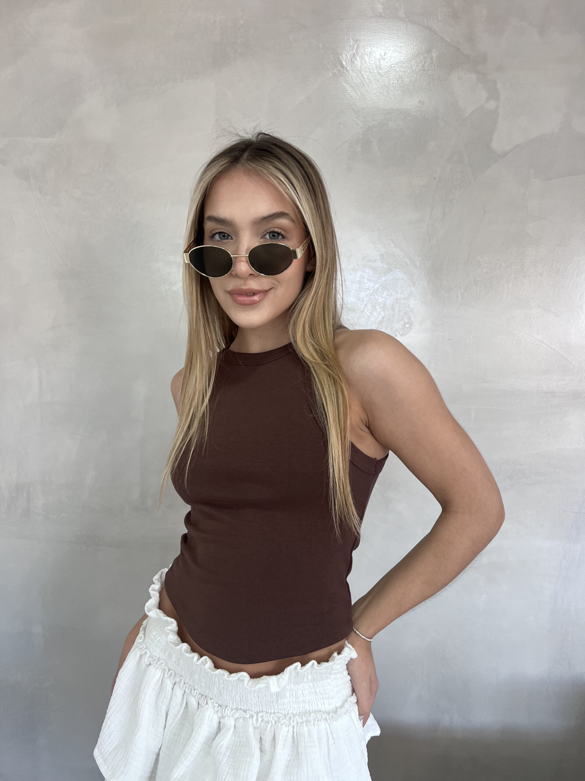 Musculosa de Ribb, escote cerrado y bretel, liso.