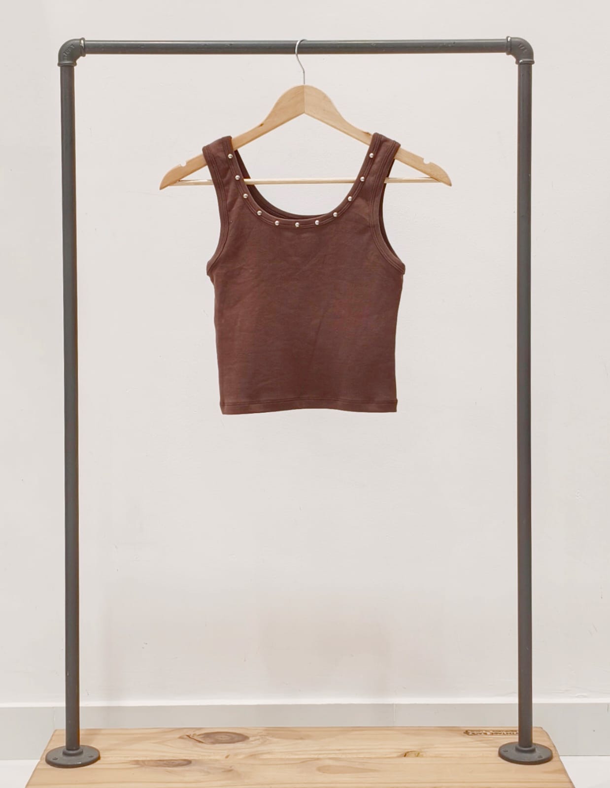Musculosa de Ribb, básica bretel ancho y escote cavado con tachas.