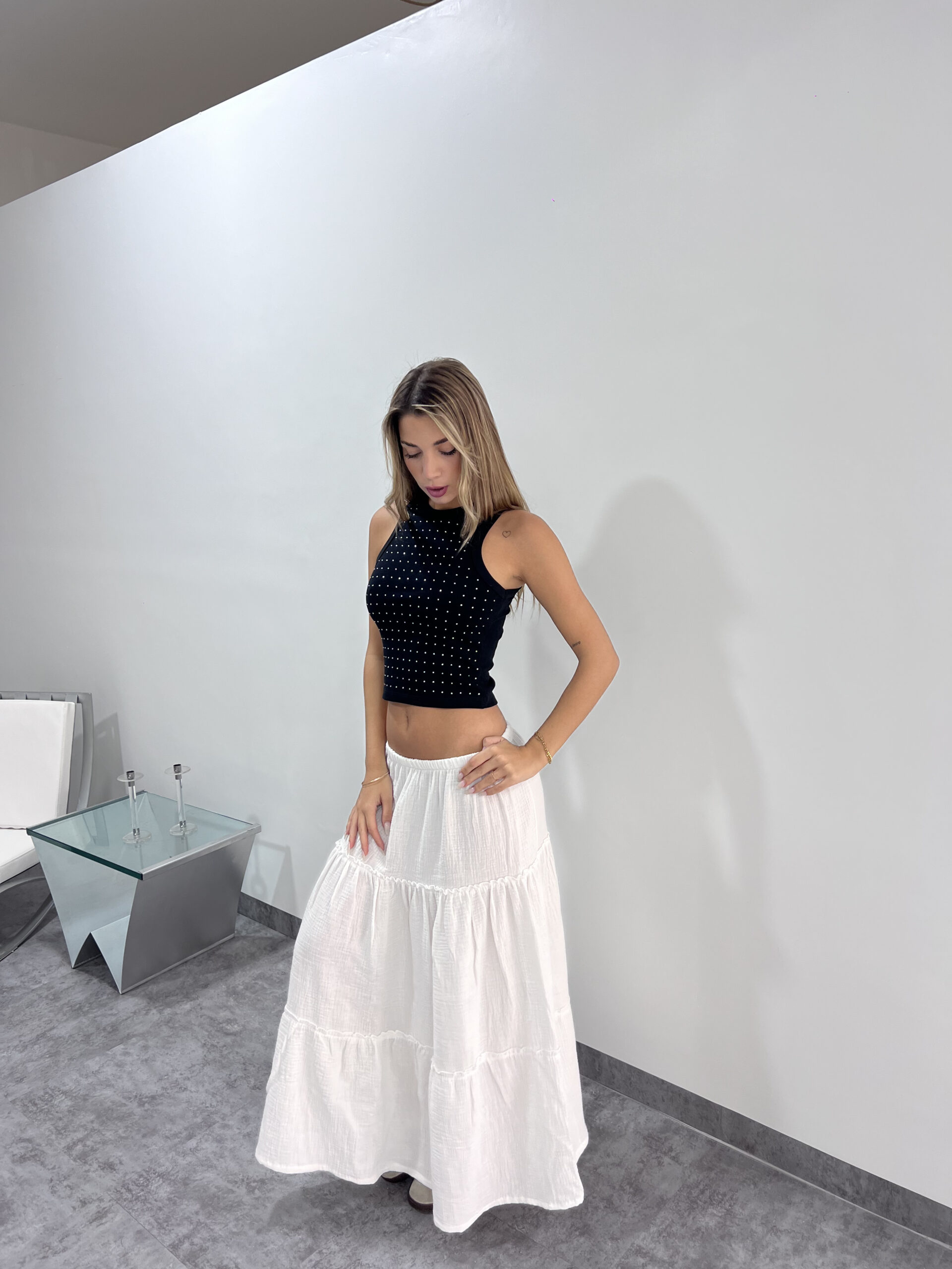Musculosa Ribb, cuello vivo 4.5, con HOT FIX Brillos.