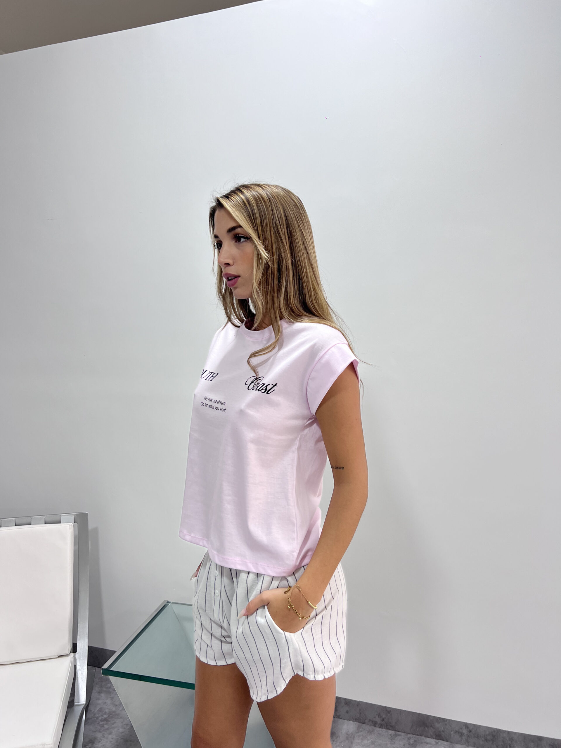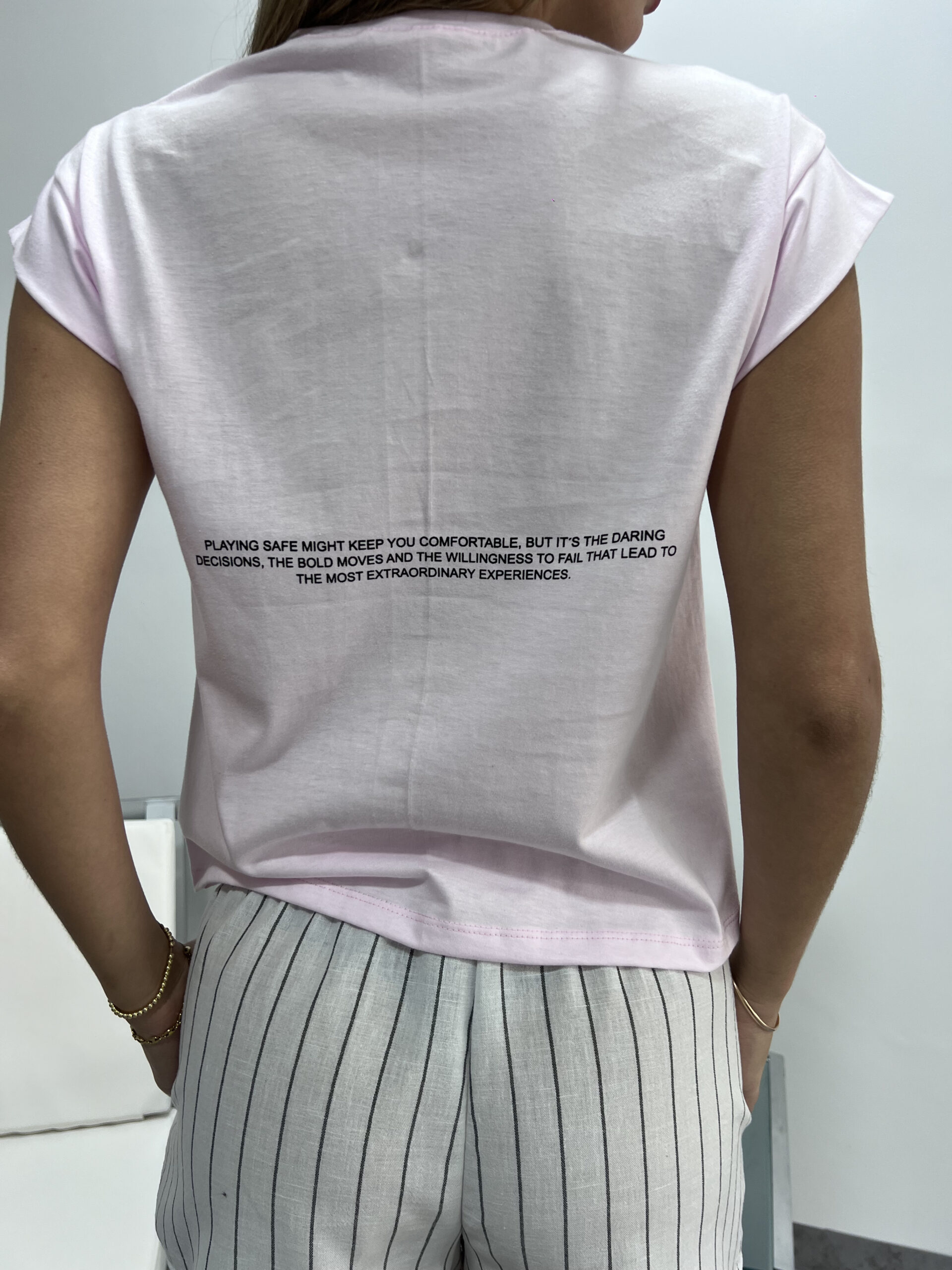 Remera de Jersey con puño, doble estampado.