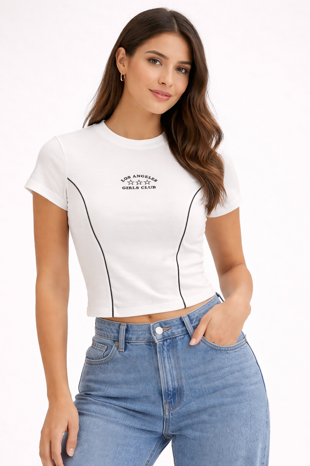 Remera de Ribby manga corta básica, con vivos y estampada.
