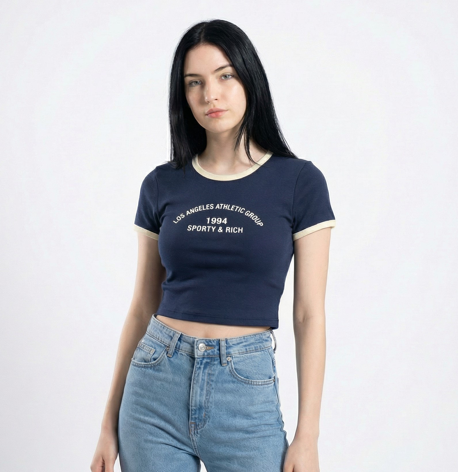 Remera de Ribb, manga corta, combinada y estampada.