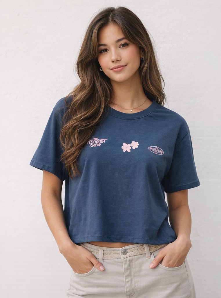 Remera de Jersey, manga corta y doble estampa.