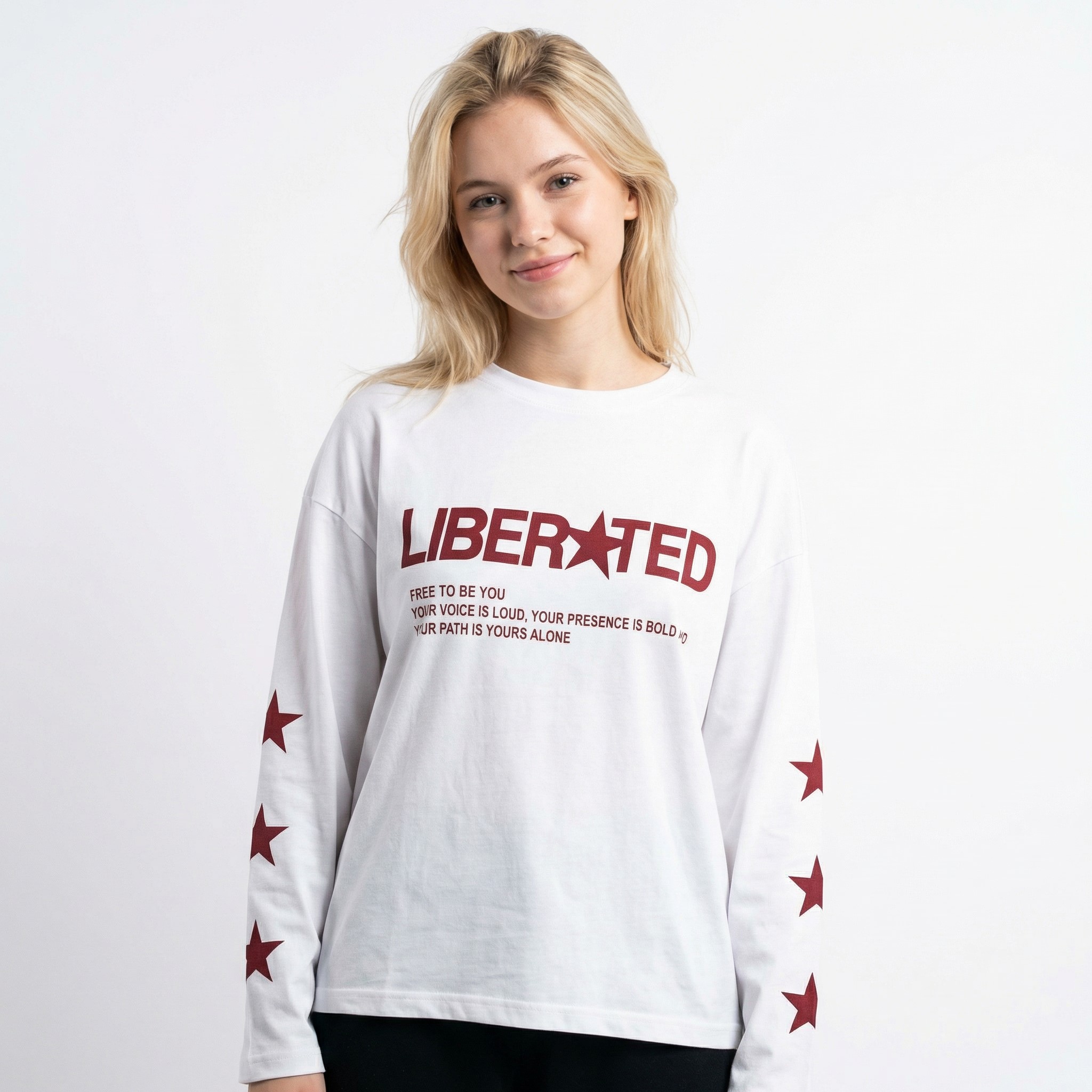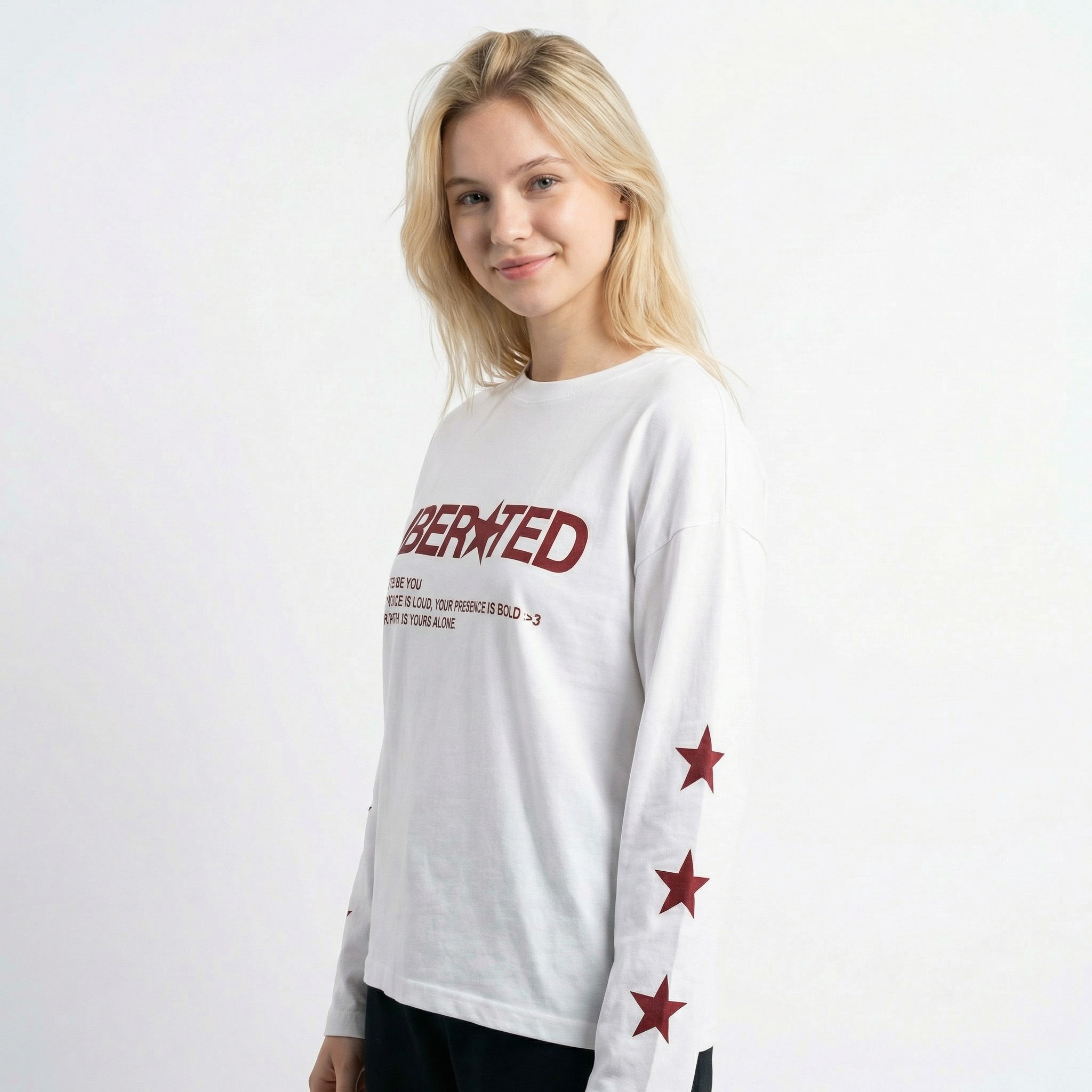 Remera de Jersey, manga larga y estampado en la delantera y mangas.