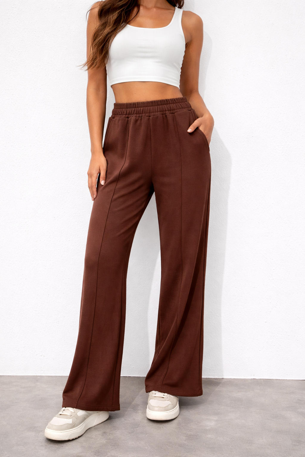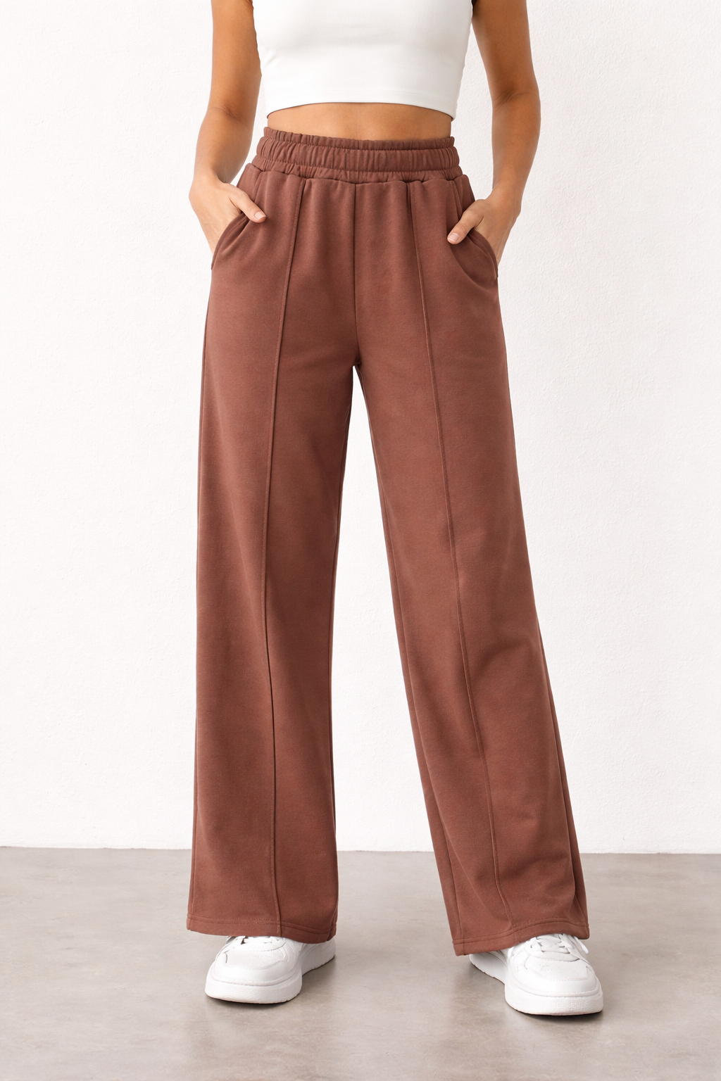 Pantalón de Plush, recto con alforzas y bolsillos.