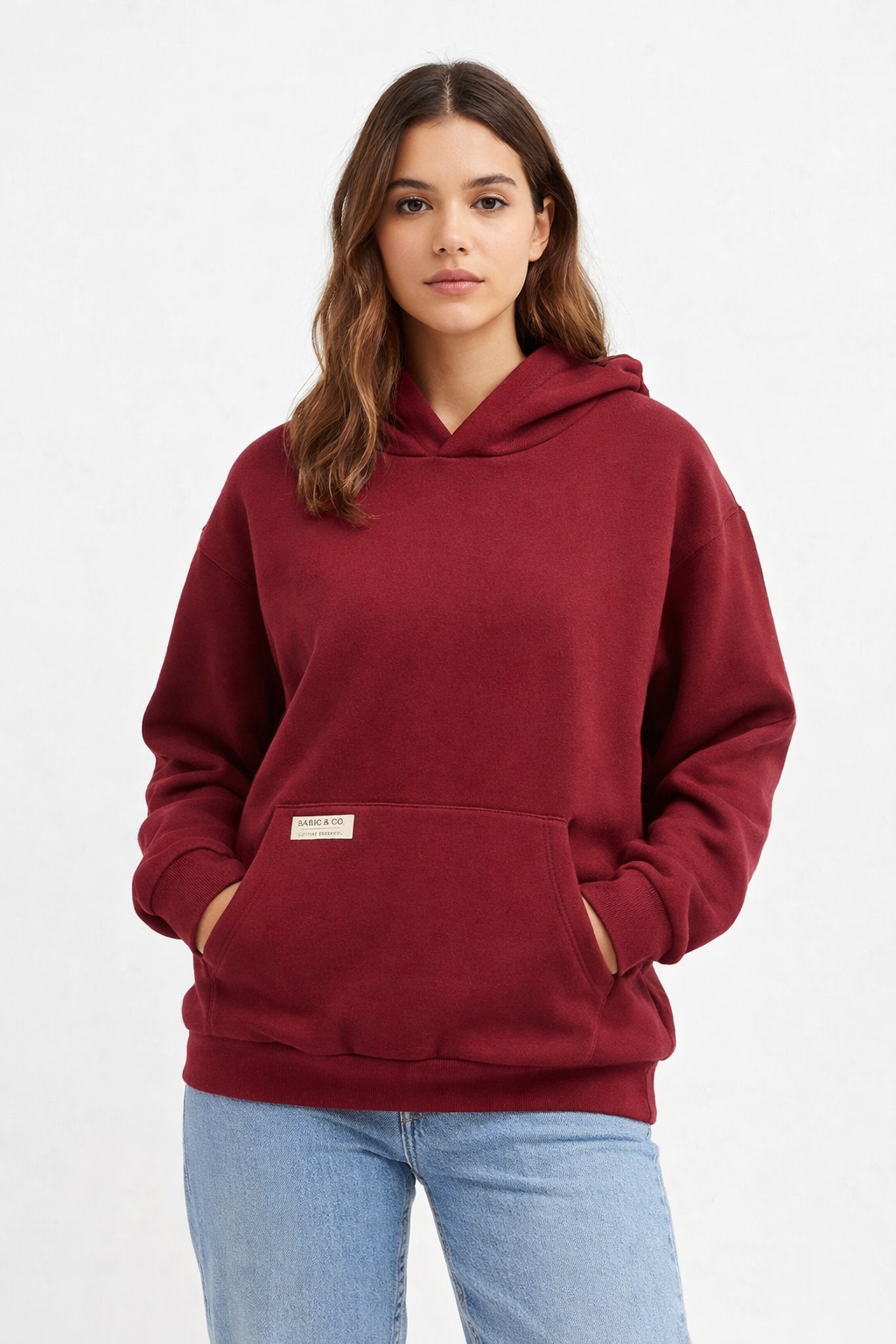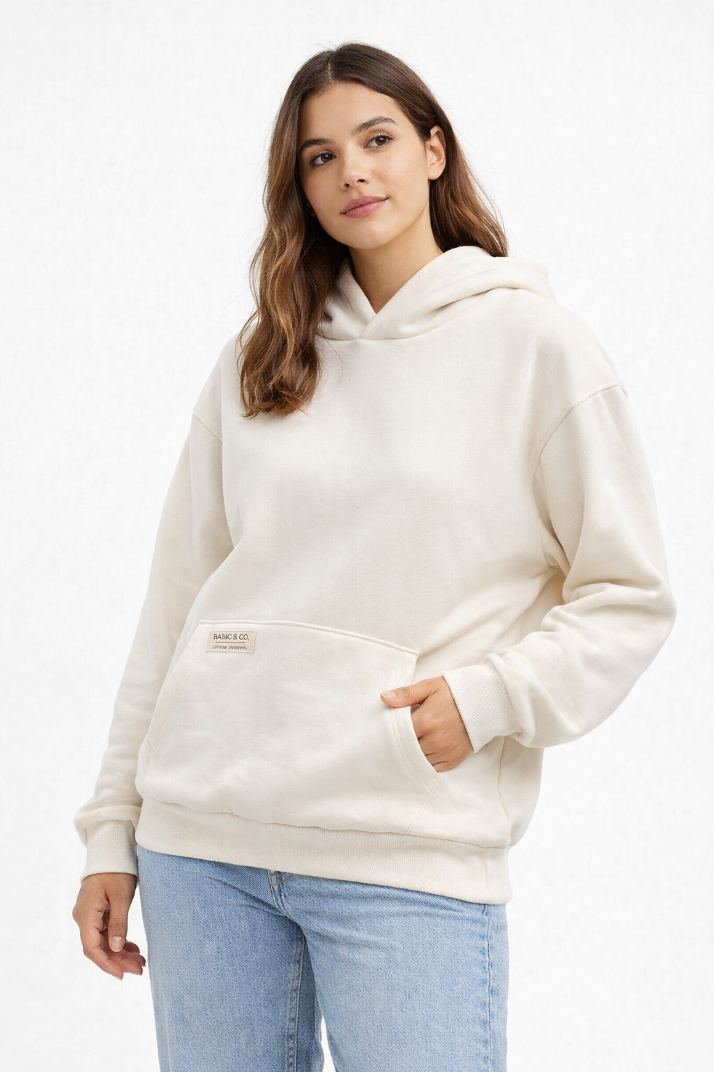 Buzo Frisado, canguro, con capucha y etiqueta liso.