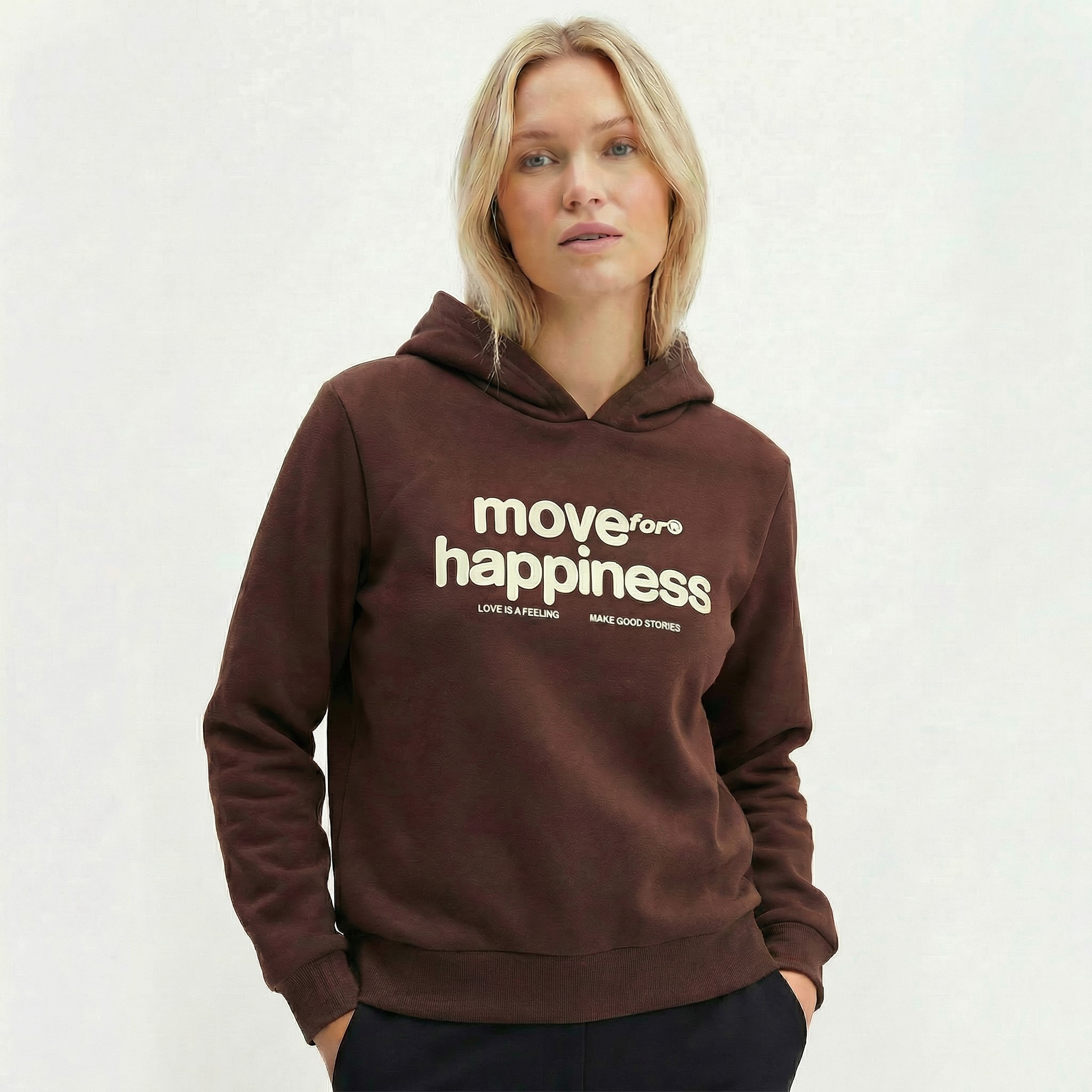 Buzo frisado, con capucha y doble estampa.